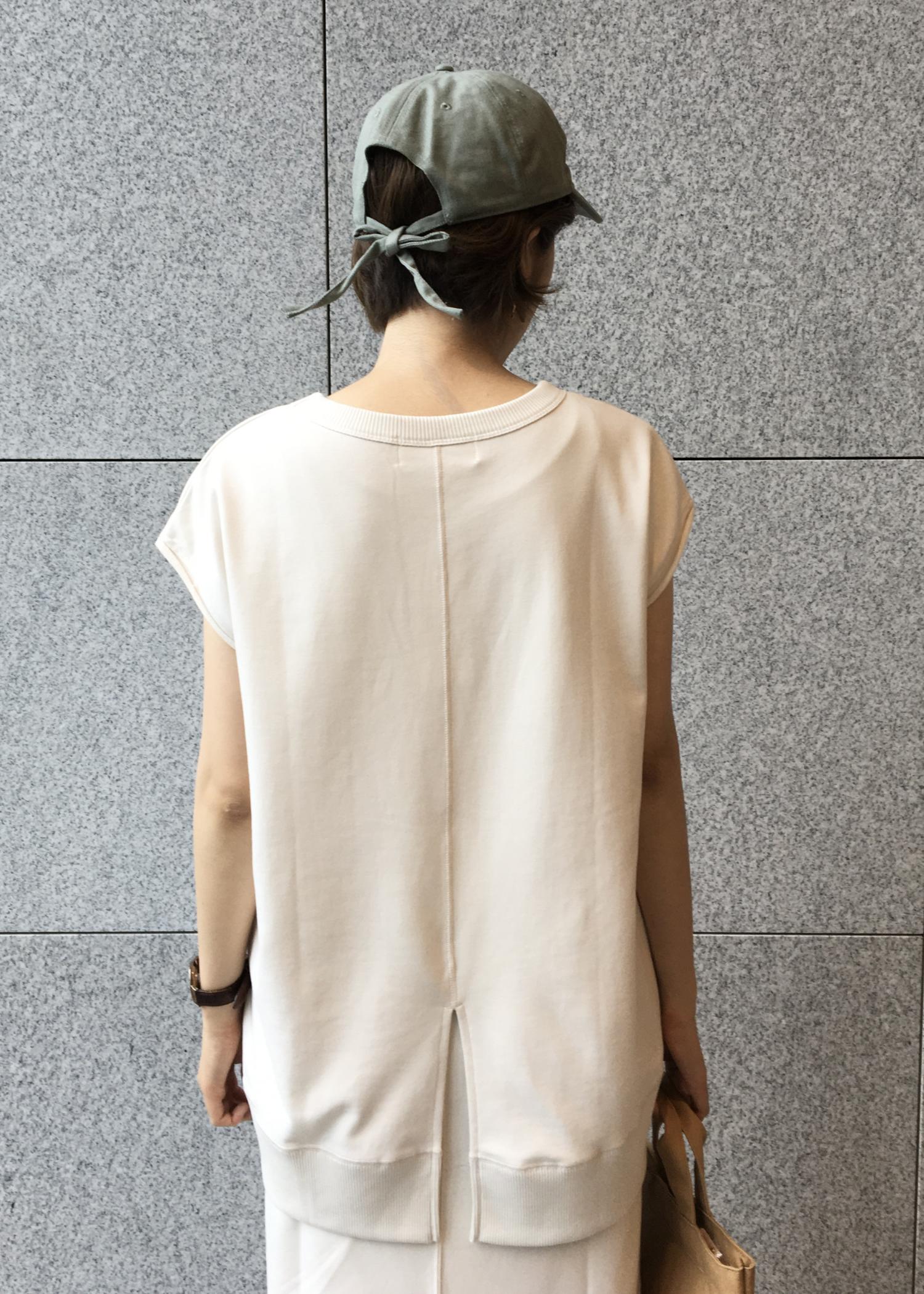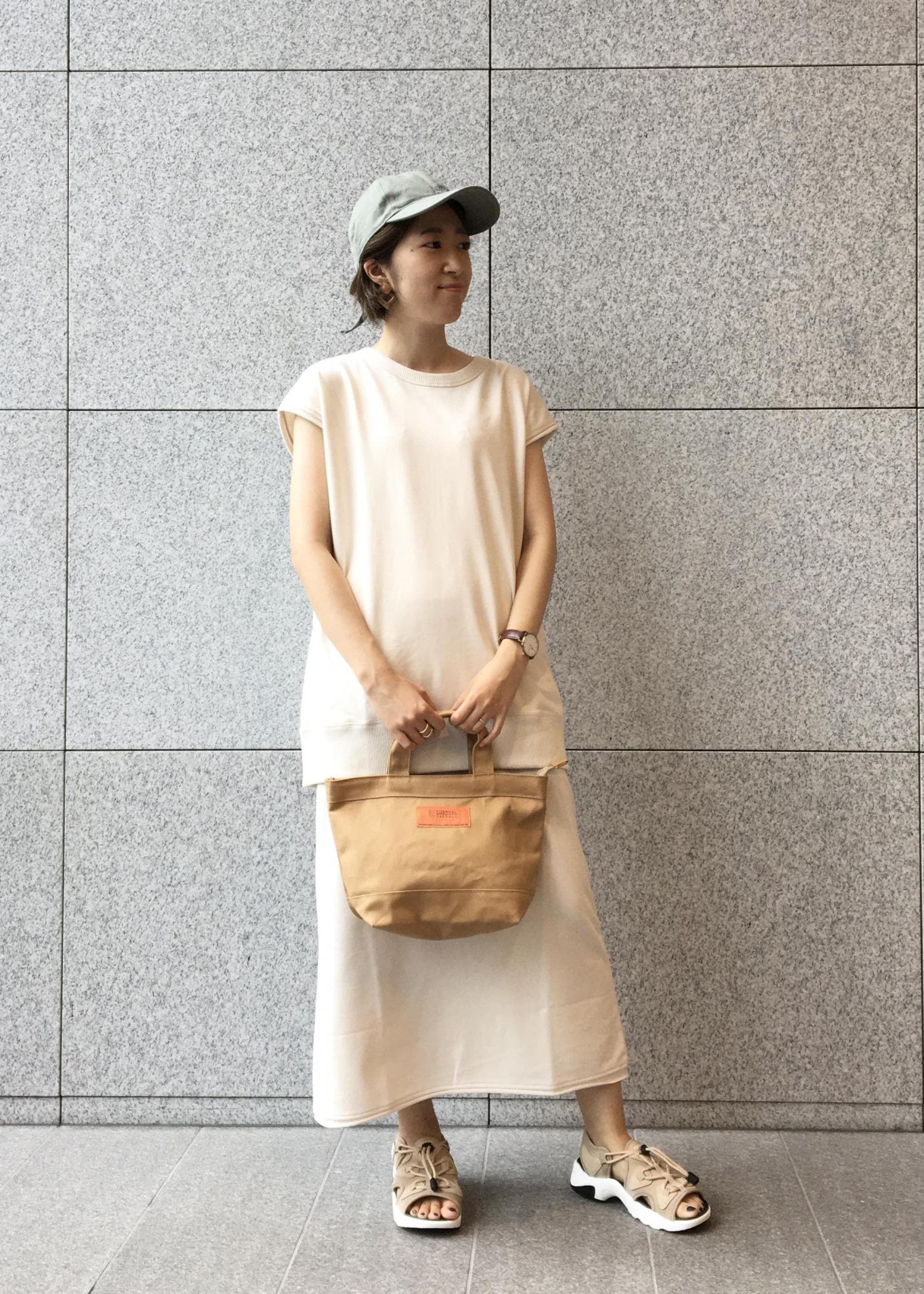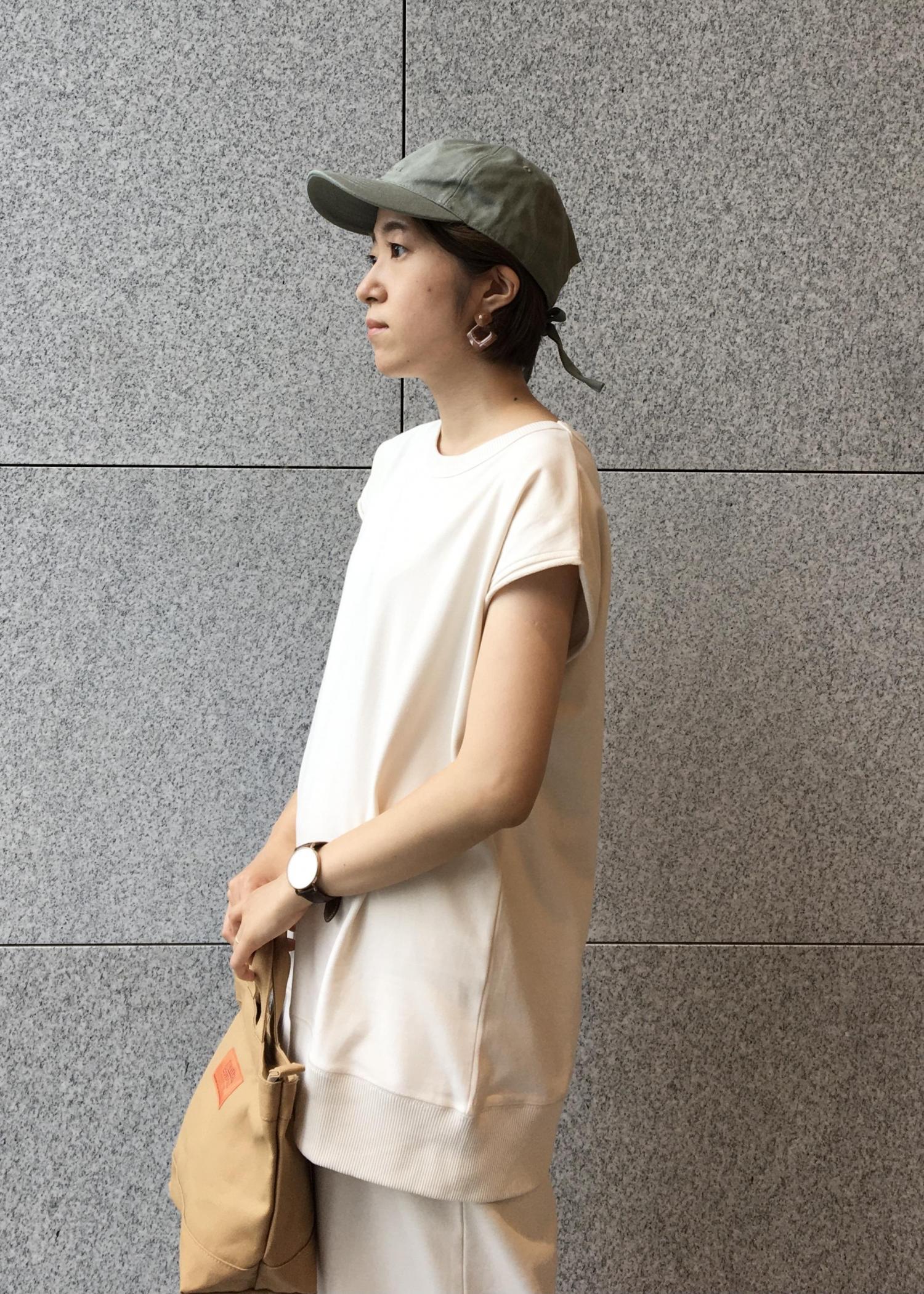 シンプルなのでキャップや小物でスタイリングの印象を変えて着るのも楽しいですよ。