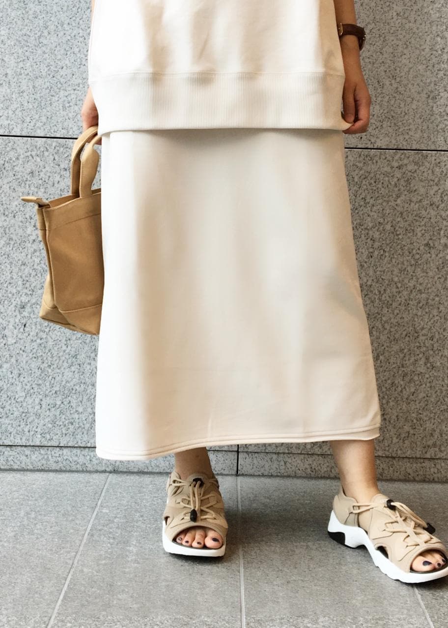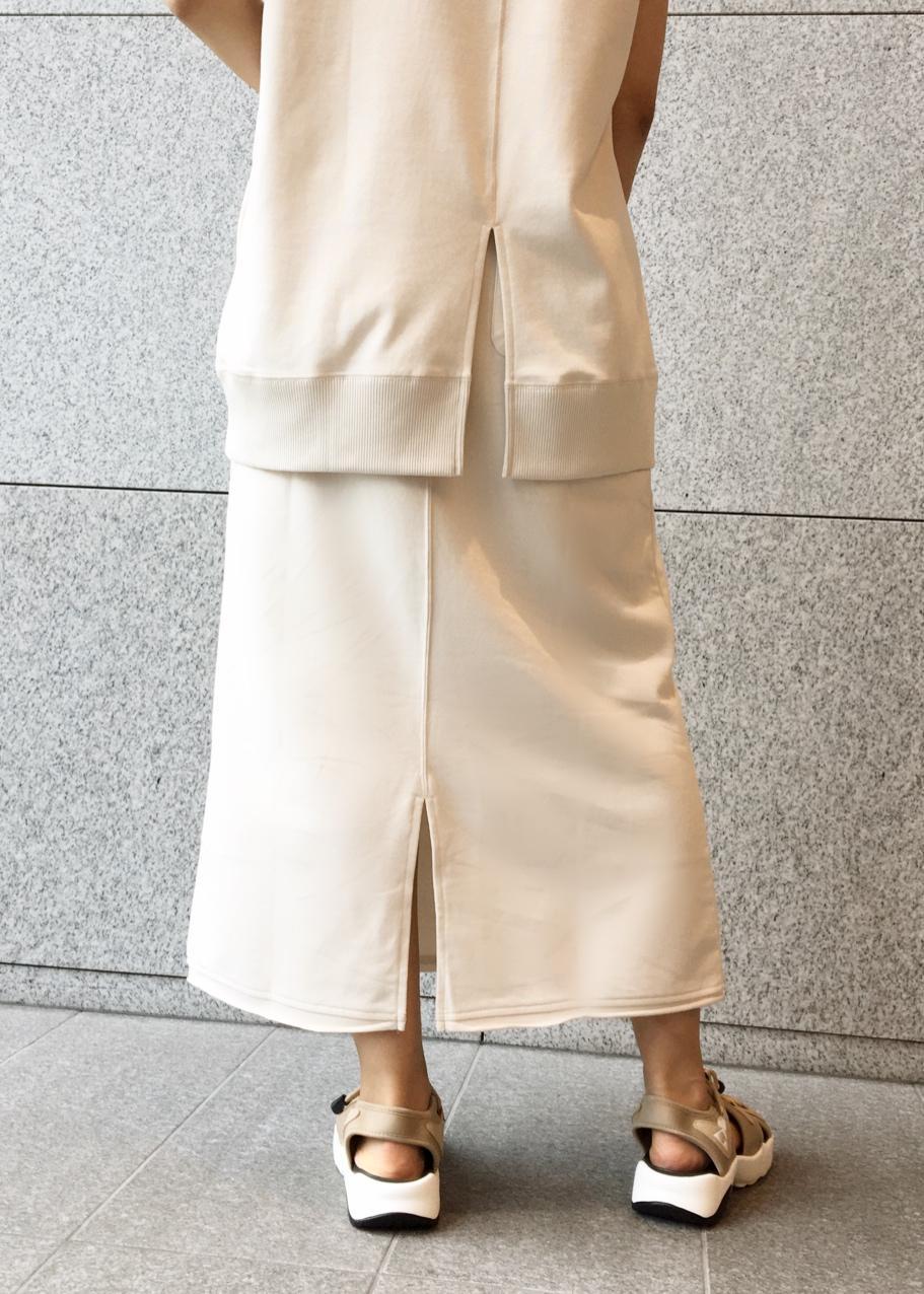 トップスはお尻まで隠れるチュニック丈でスカートも長めですが、どちらも深めにスリットが入っているのですっきり見えます。