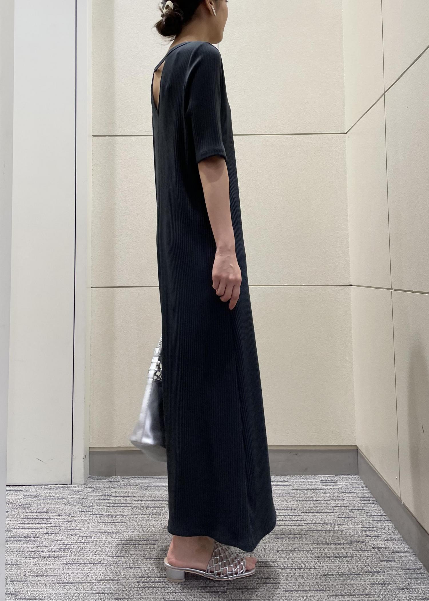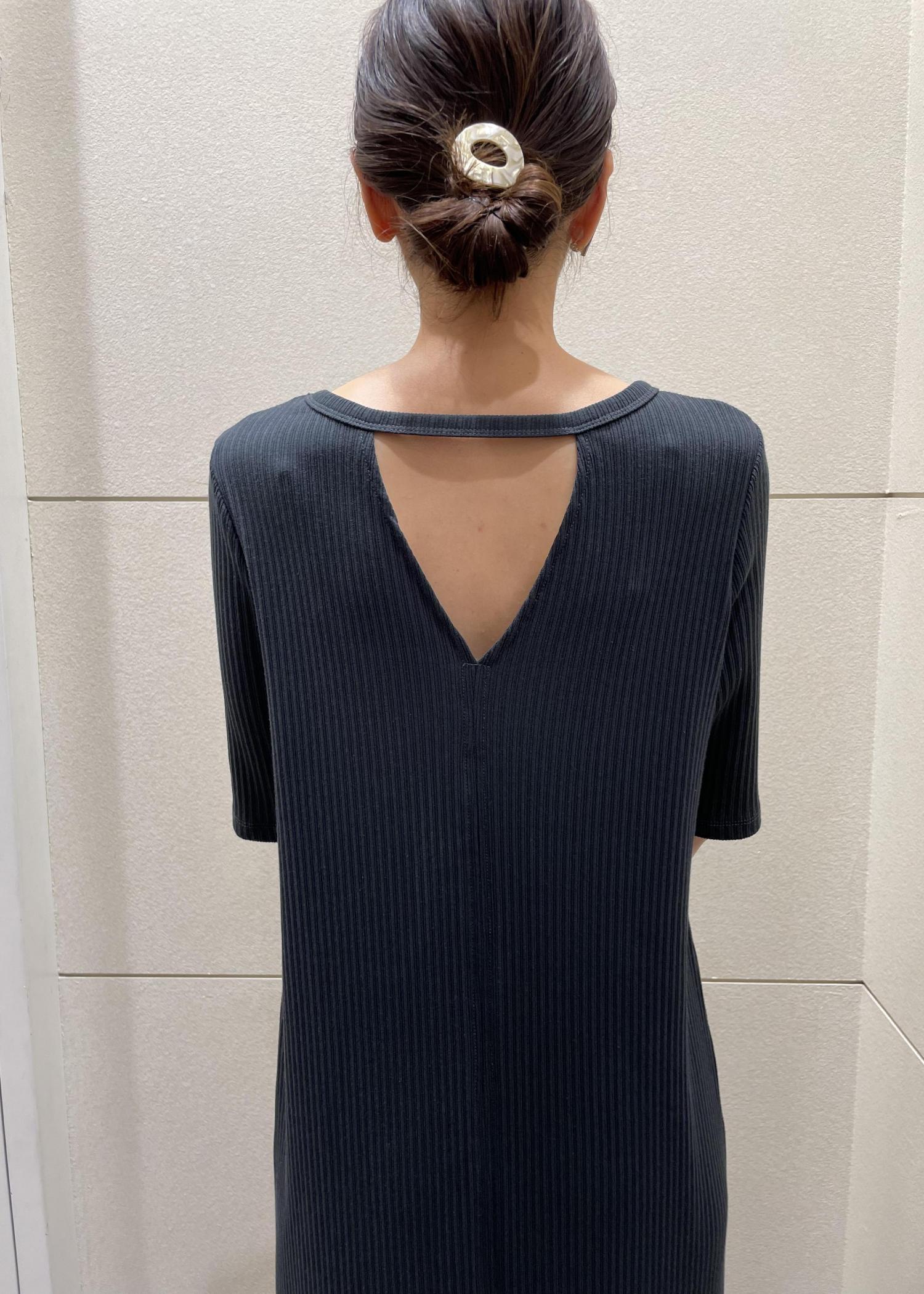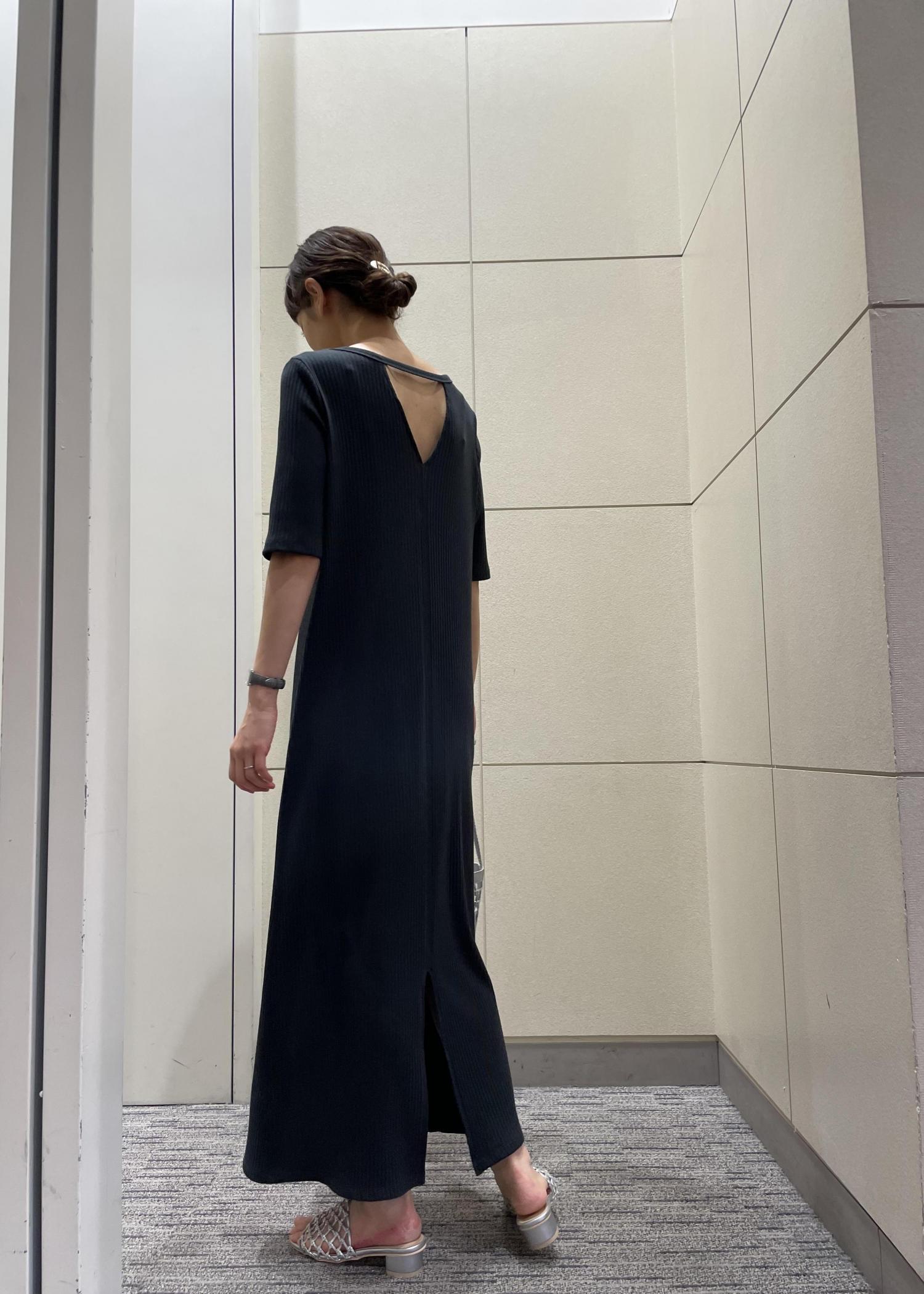 背中がポイントになっているシンプルなワンピースです。