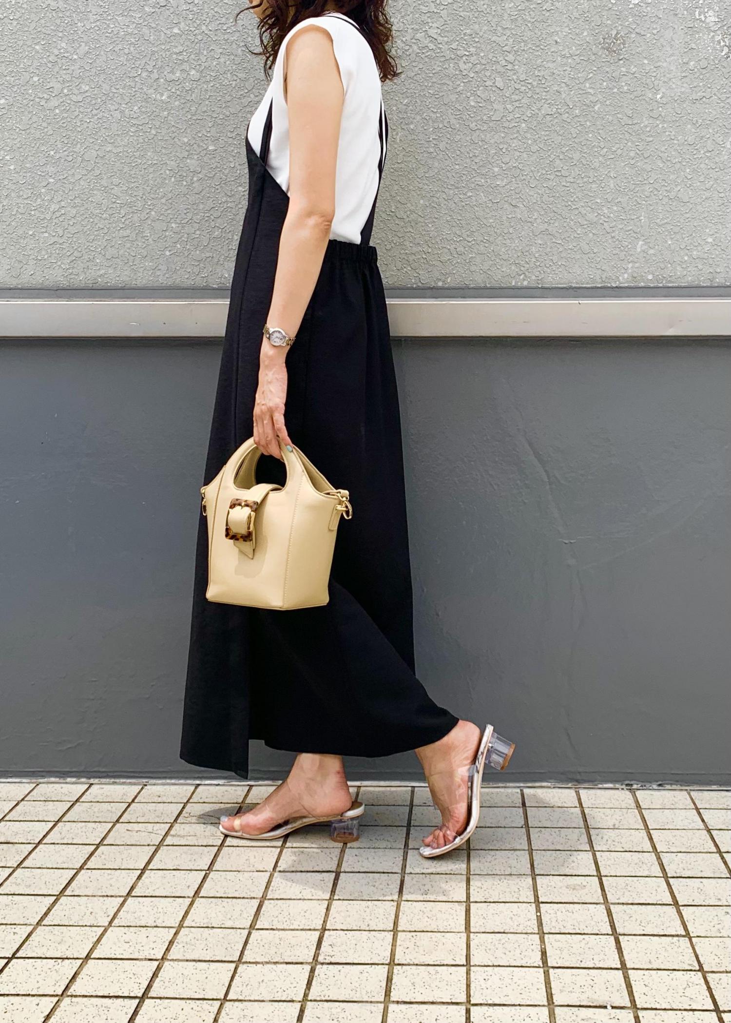 今回はモノトーンでスッキリとした大人カジュアルコーデに致しました。 足元にスリットが入っているので、サンダルを合わせるとより涼やかに着て頂けます。