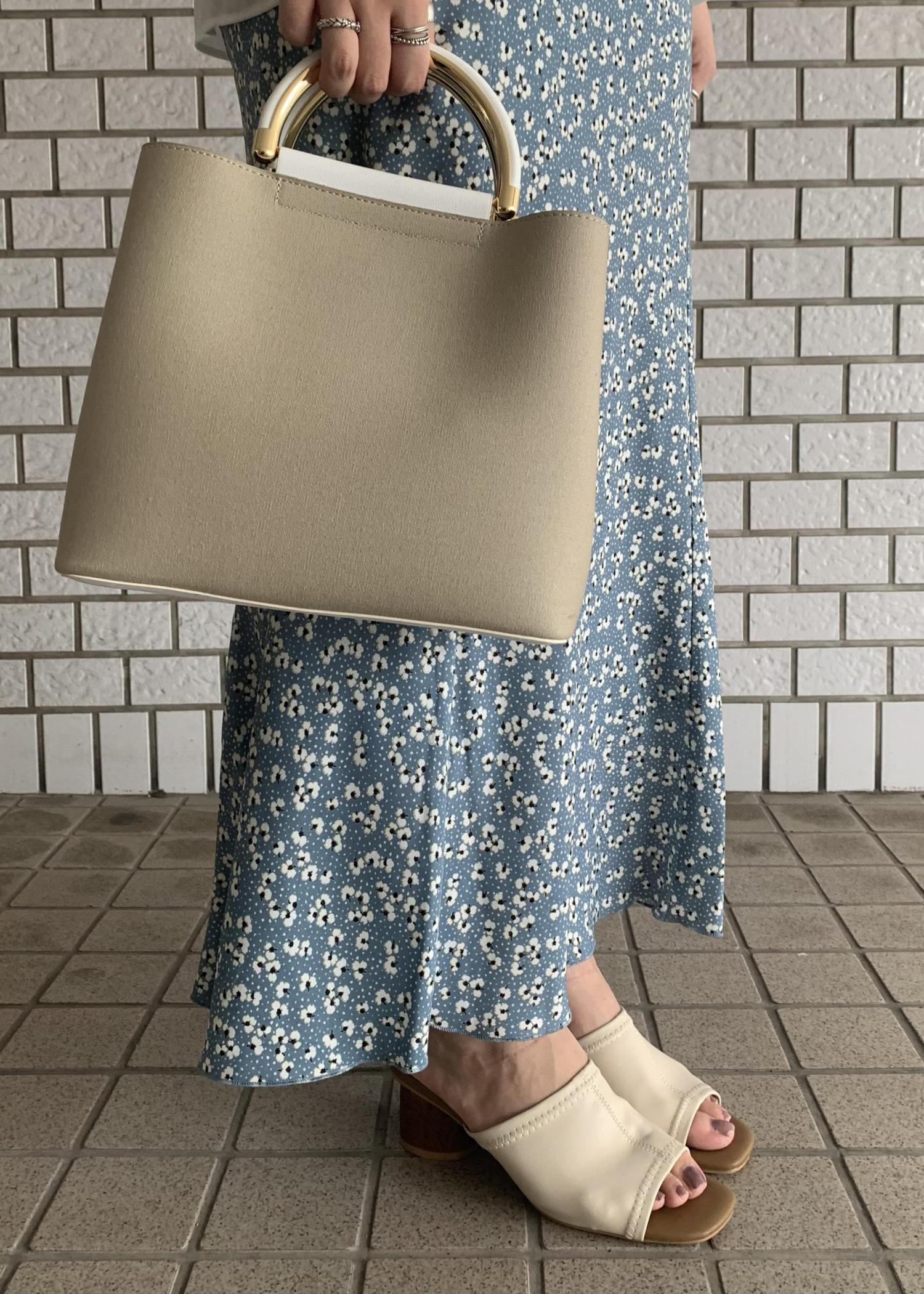 花柄のマーメイドスカートとブラウスを合わせることで爽やかでかわいらしいスタイリングになっています。