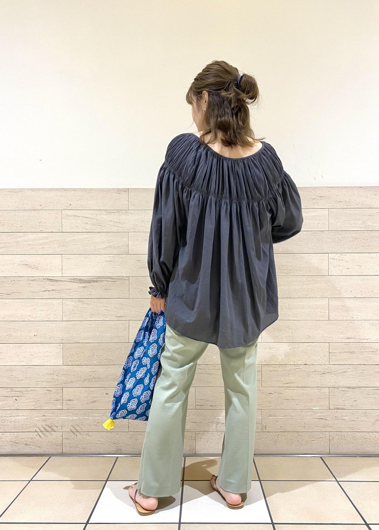 カラーが鮮やかなグリーンボトムを今年らしくスミクロカラーでスタイリングしてみました♡トップスとしても羽織としてもお召し頂ける万能ブラウスと合わせれば梅雨時期から夏の羽織に着回して頂けます。