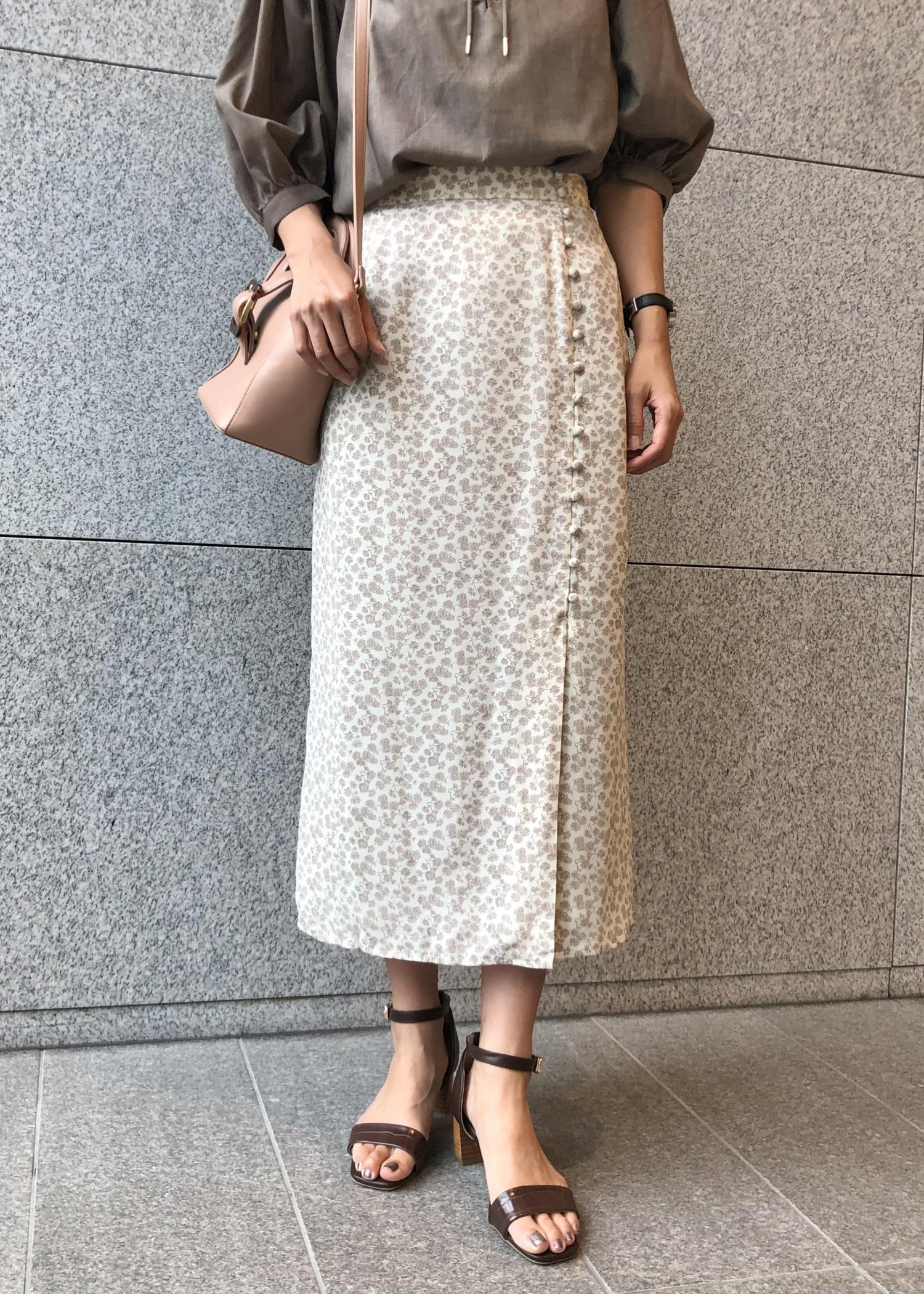 アウトレットROPÉ PICNICフラワープリントくるみ釦ラップスカートベージュ / 38¥1,650レビュー【身長】161cm