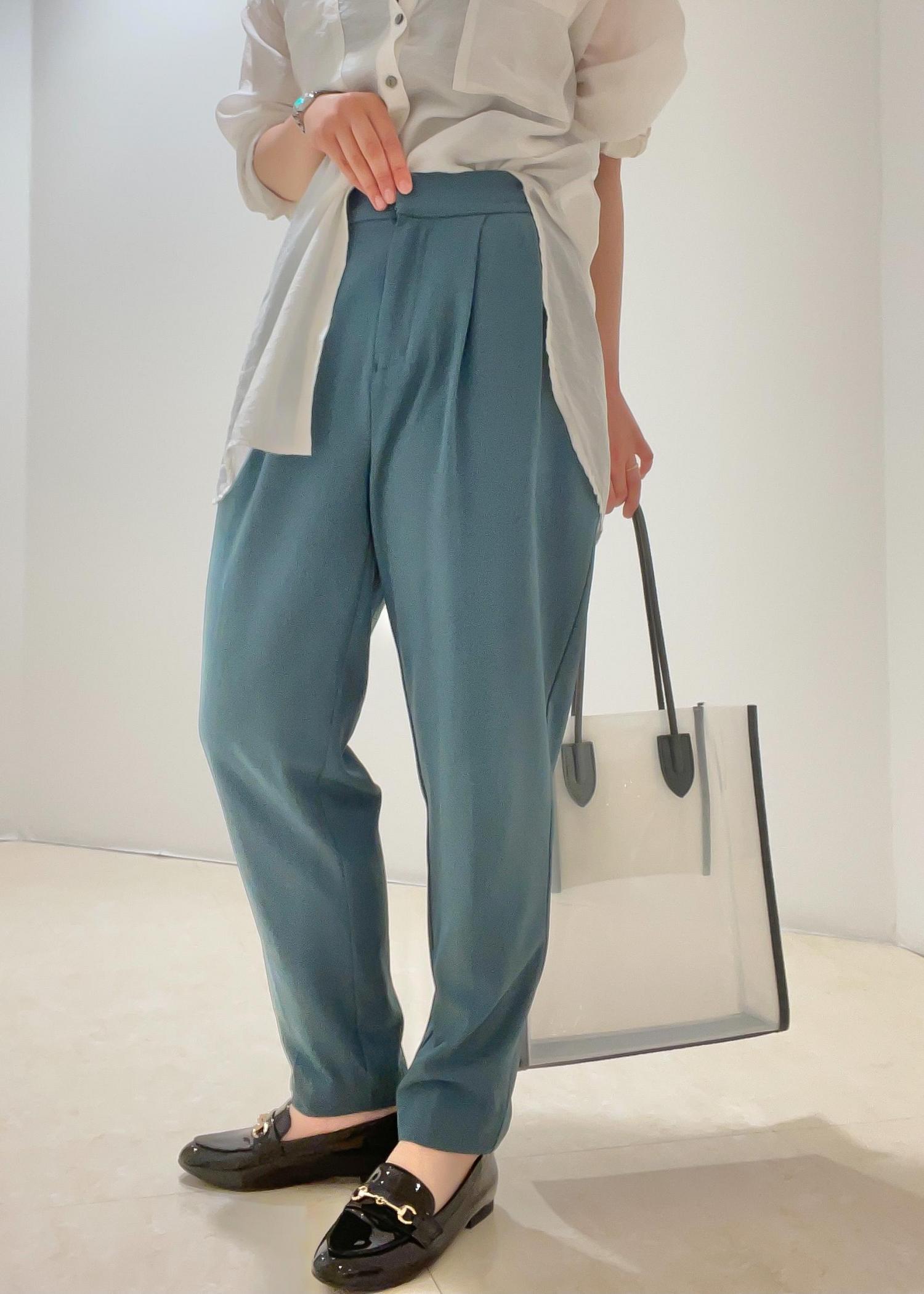 キレイめな印象の強いテーパードパンツに オーバーサイズのシアーシャツを合わせて 抜け感のある大人のスタイリングに仕上げました。 シャツを片側だけインすると こなれた雰囲気も出せますよ! シアーシャツはさまざまな着こなしができるので 今季マストのアイテムです!