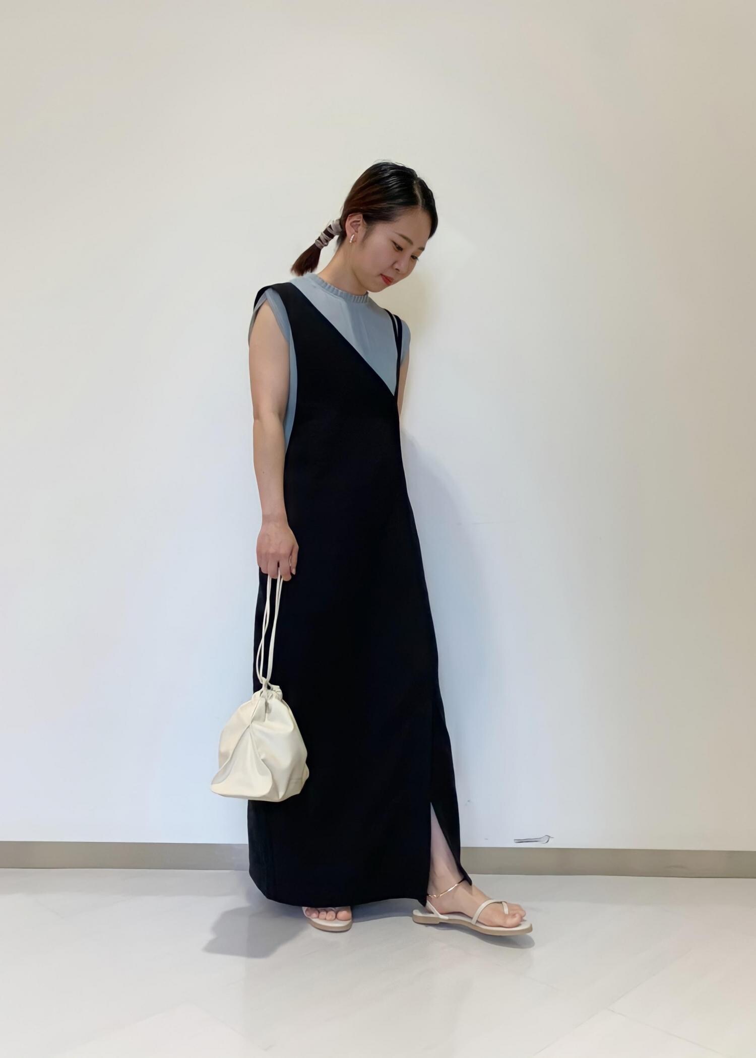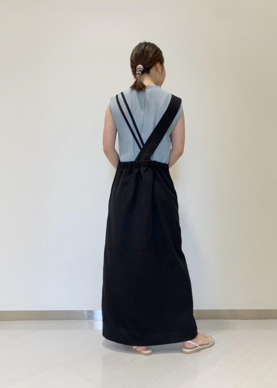 甘くなりすぎない大人のジャンパースカートスタイルです。Iラインシルエットでスタイルアップが叶います!