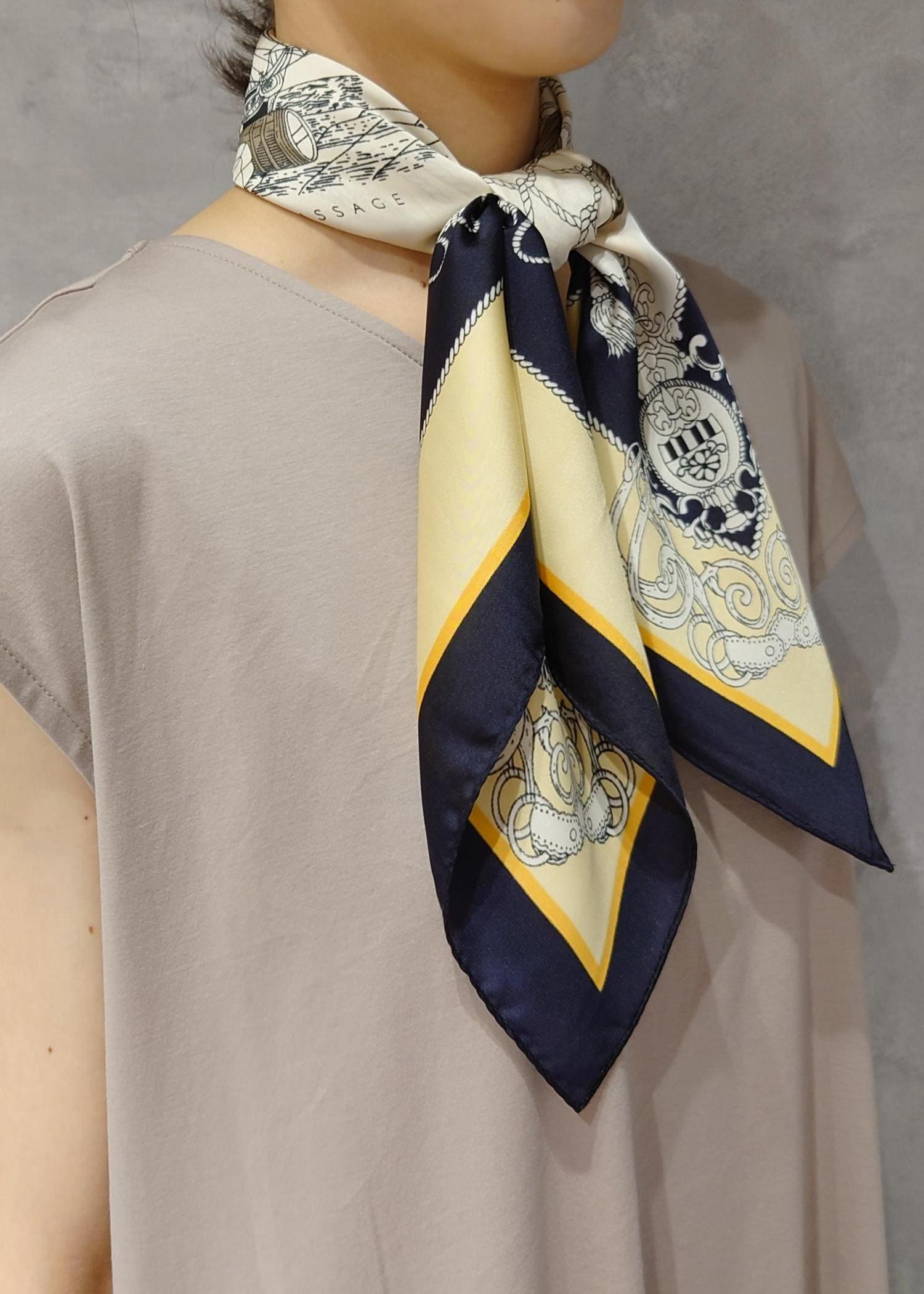 裾のフリルがふんわりしているので、シンプルですがカジュアルすぎないコーディネートに。 明るいカラーのスカーフを合わせて、華やかなキレイめコーデにも見せる事が出来ます。