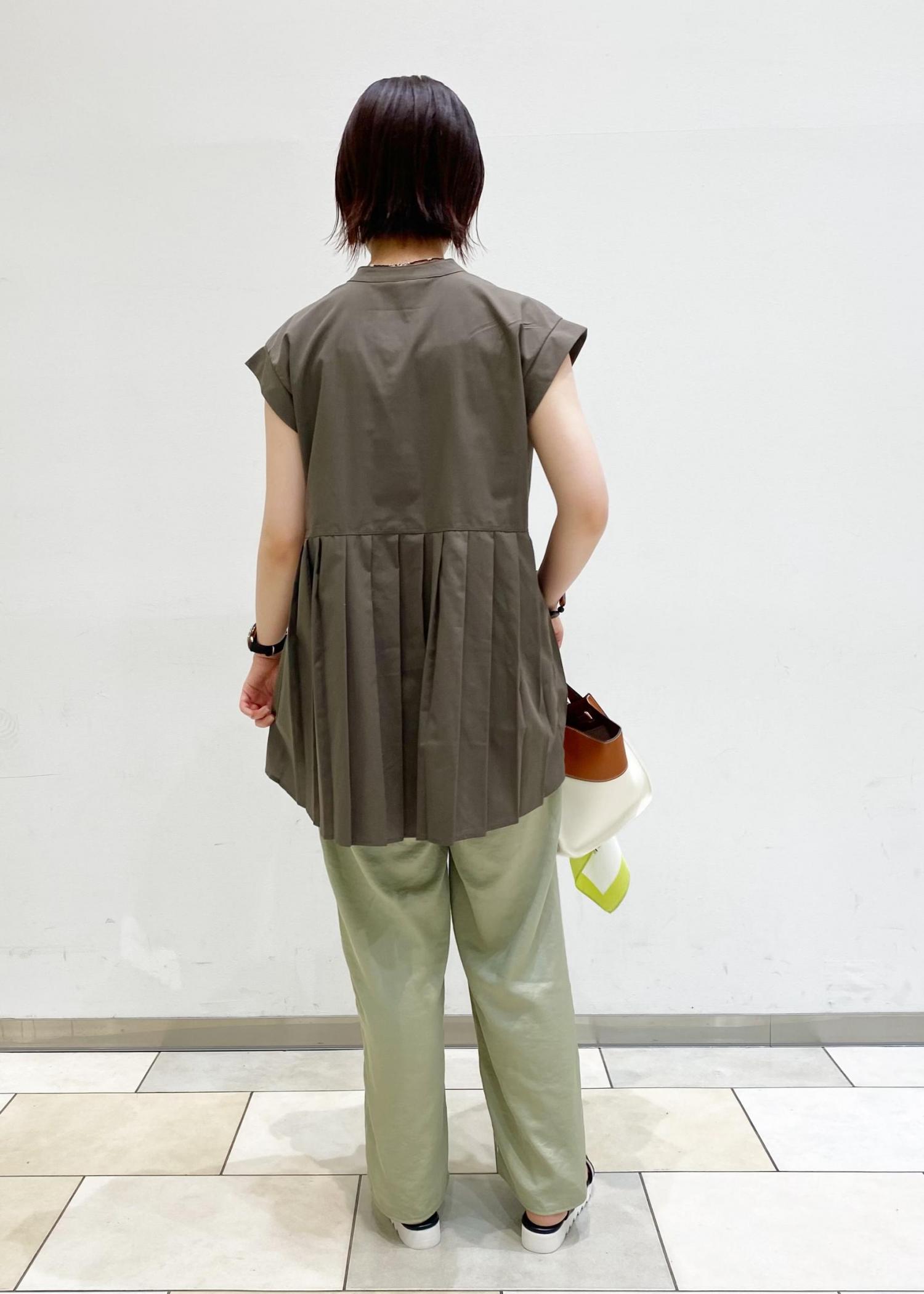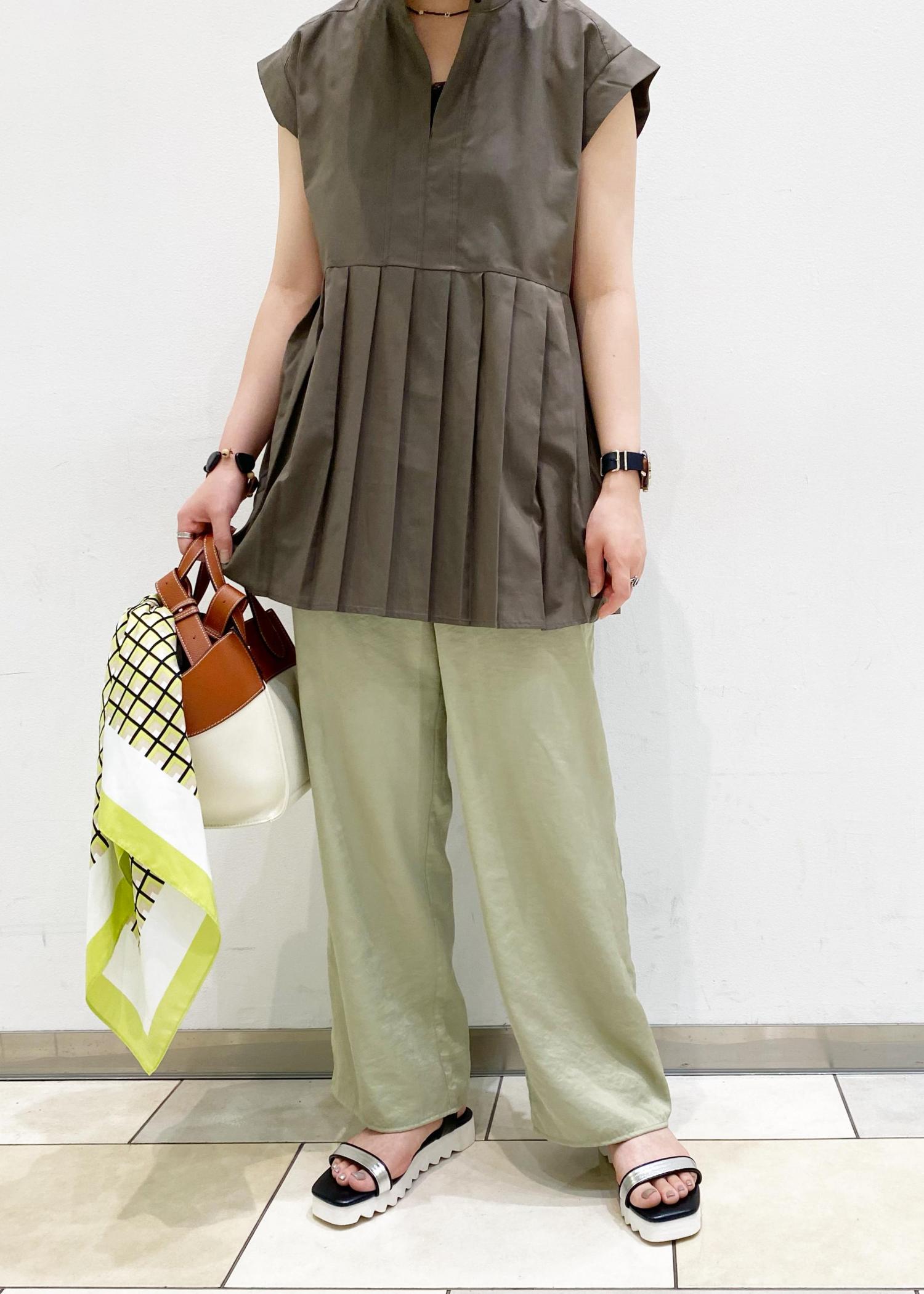 綺麗めすぎずカジュアルすぎないオンオフ使えるアイテムを意識しました◎ 足元をパンプスに変えればオフィスカジュアルでも着られるスタイリングです。 パンツはウエストがカジュアルなのであえてチュニック丈のアイテムとレイヤードしています。 またカラーをワントーンにまとめると抜け感が出ます!
