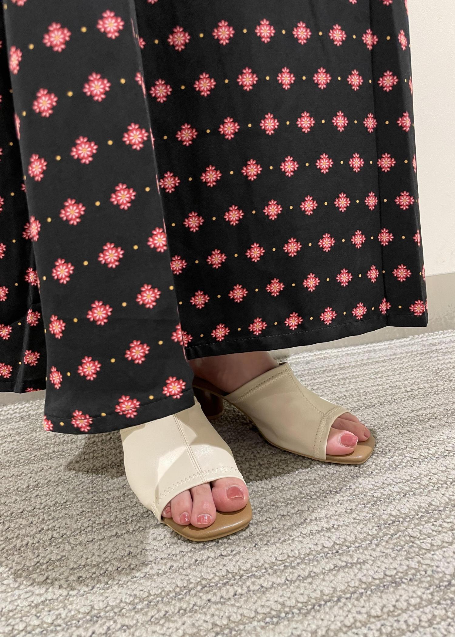 ブラックベースのコーディネートは足元を明るくして抜け感を出すと重たくなりません。
