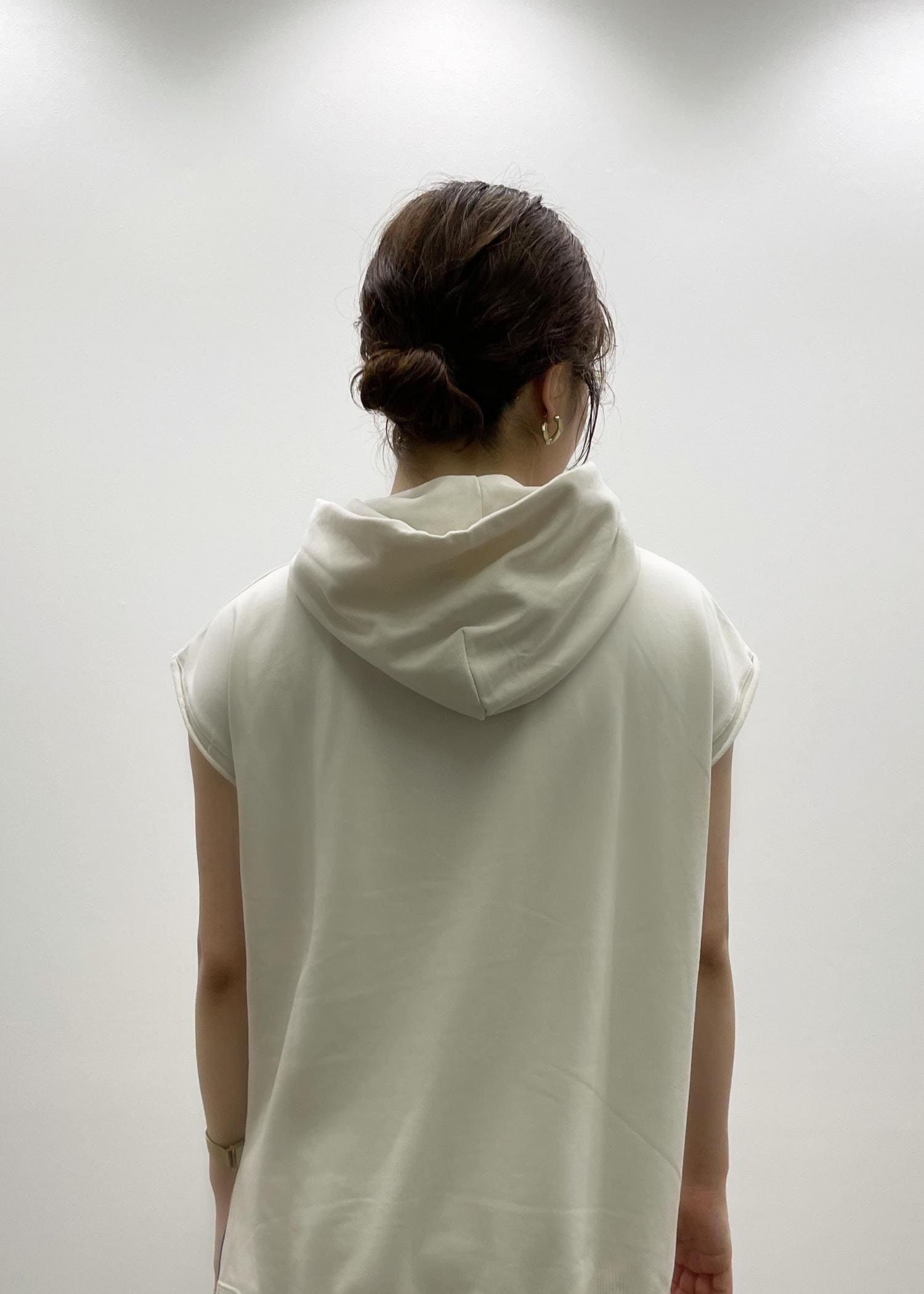 フーディーにカラーパンツを合わせたシンプルなコーディネートです。サンダルとトップスのカラーを合わせて統一感を出しました。