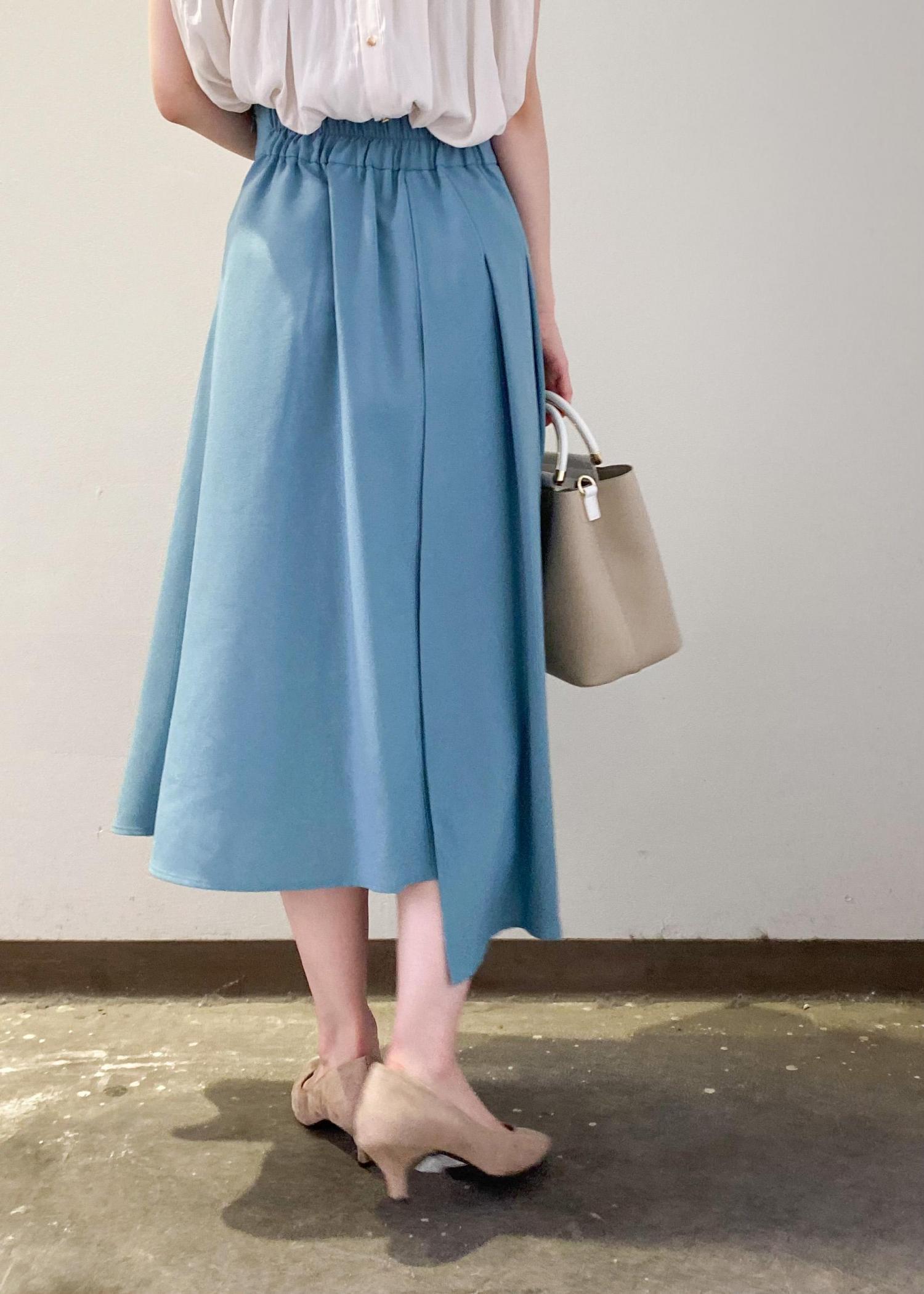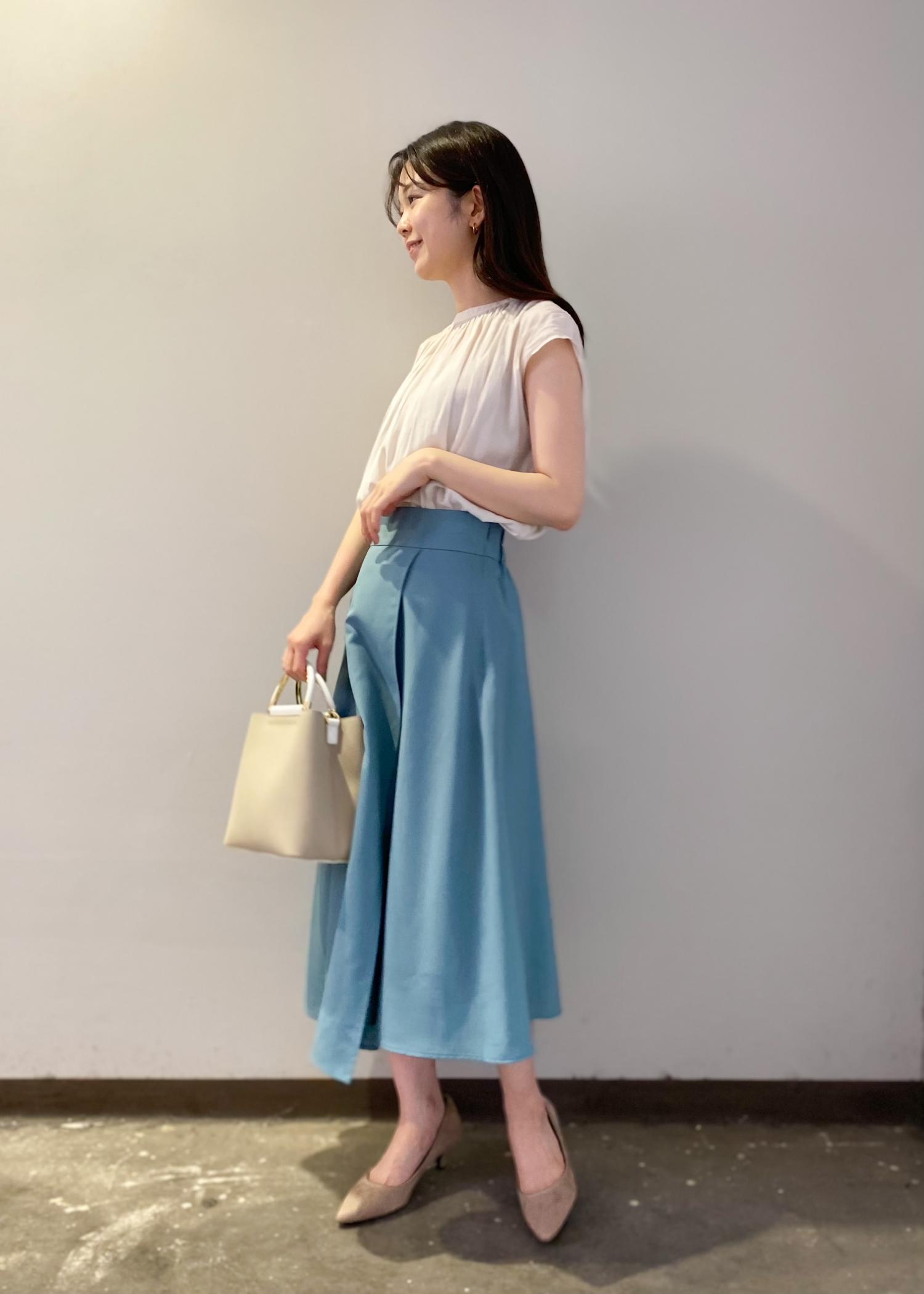 どのアイテムもシルエットが綺麗目です。スカートは素材がポリエステルなので、Tシャツなど、カジュアルなアイテムでも◎