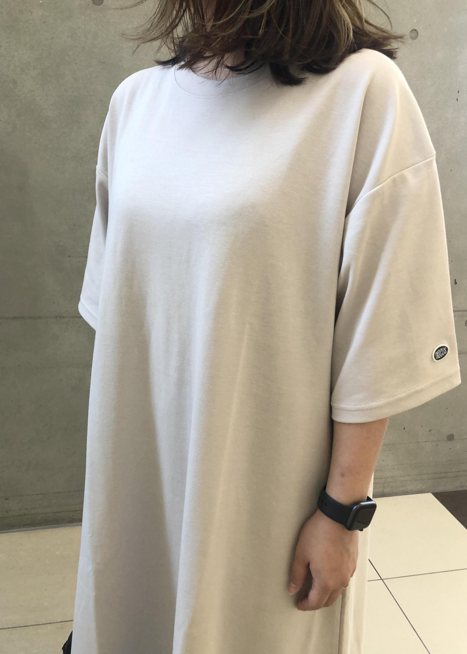 一枚で着れるワンピースですがワイドパンツを合わせてみました。また、ワンピースは吸水速乾機能がついているので今の時期にピッタリです。