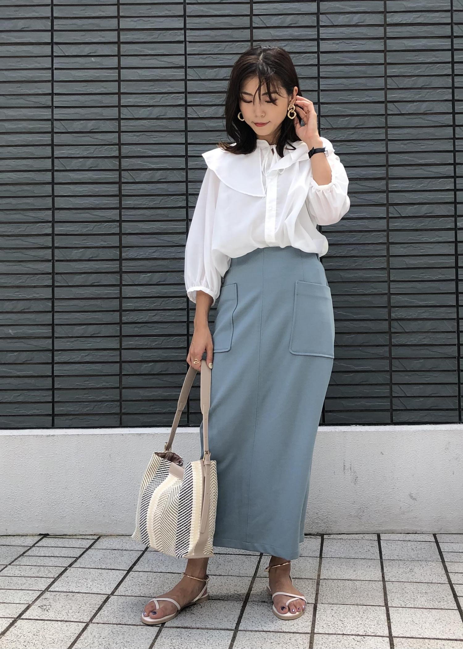 紫外線や冷房対策として丁度良く使える7分袖ブラウスのコーディネートです♪