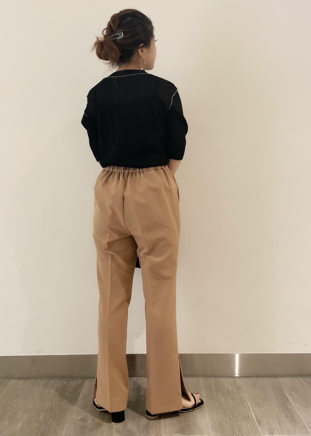 履き心地良く、スタイルアップ効果もあるラク美パンツをメインにシアートップスを合わせて、トレンドを意識したオフィスコーデにしました☺︎