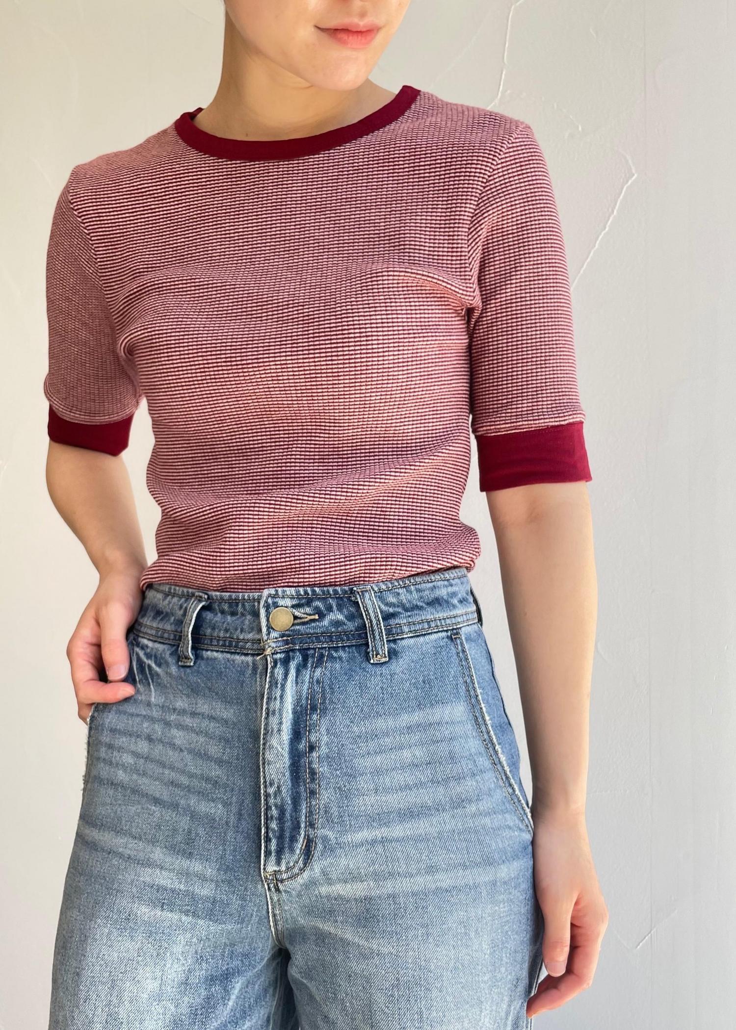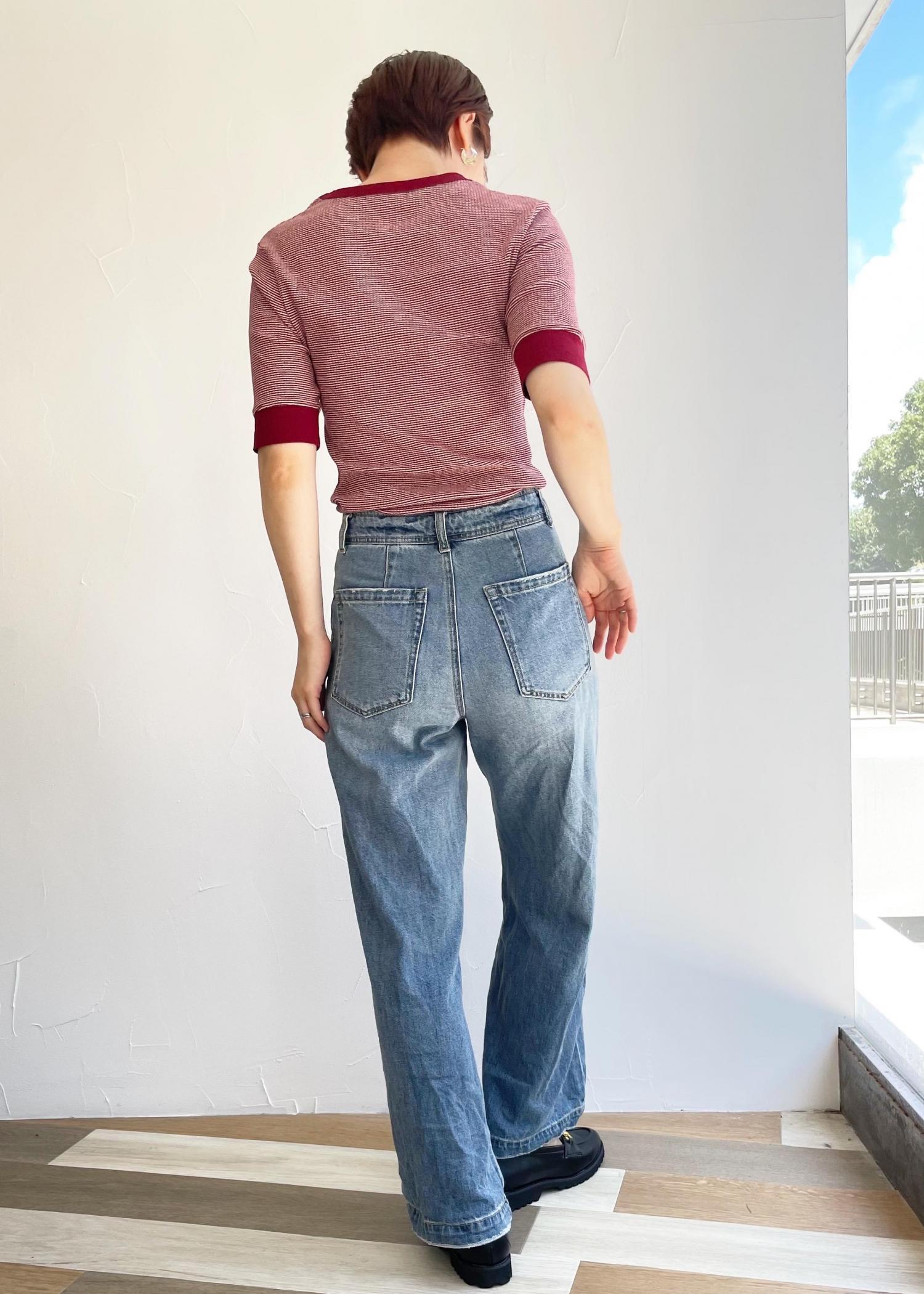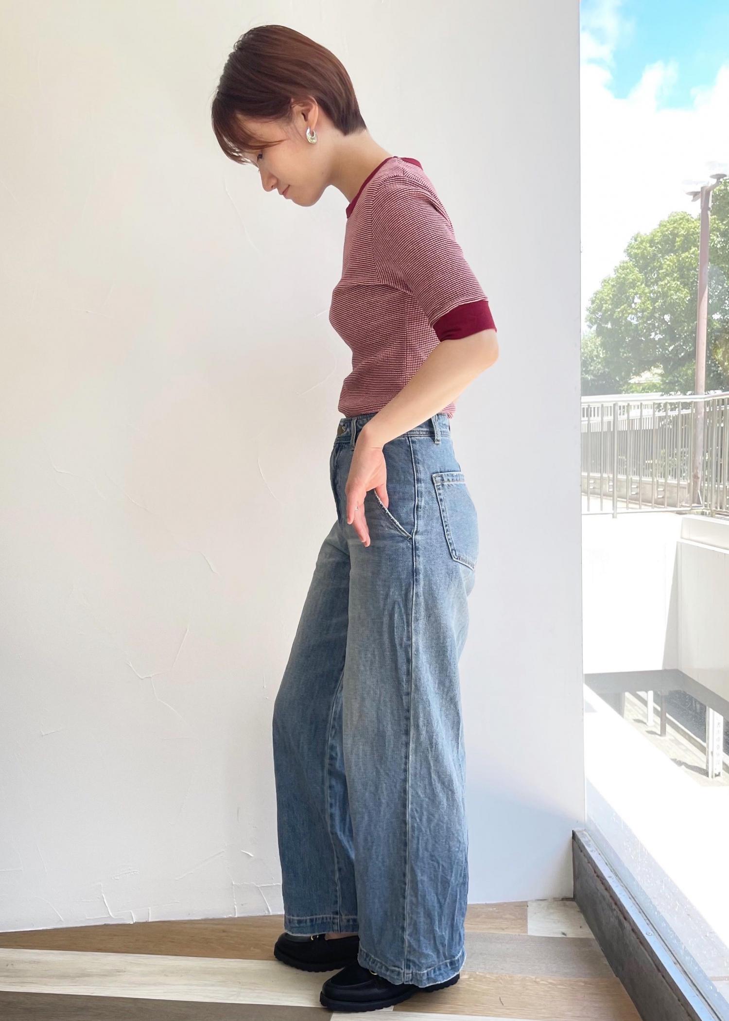 トレンドのリンガーTシャツにデニムを合わせたカジュアルコーデです!