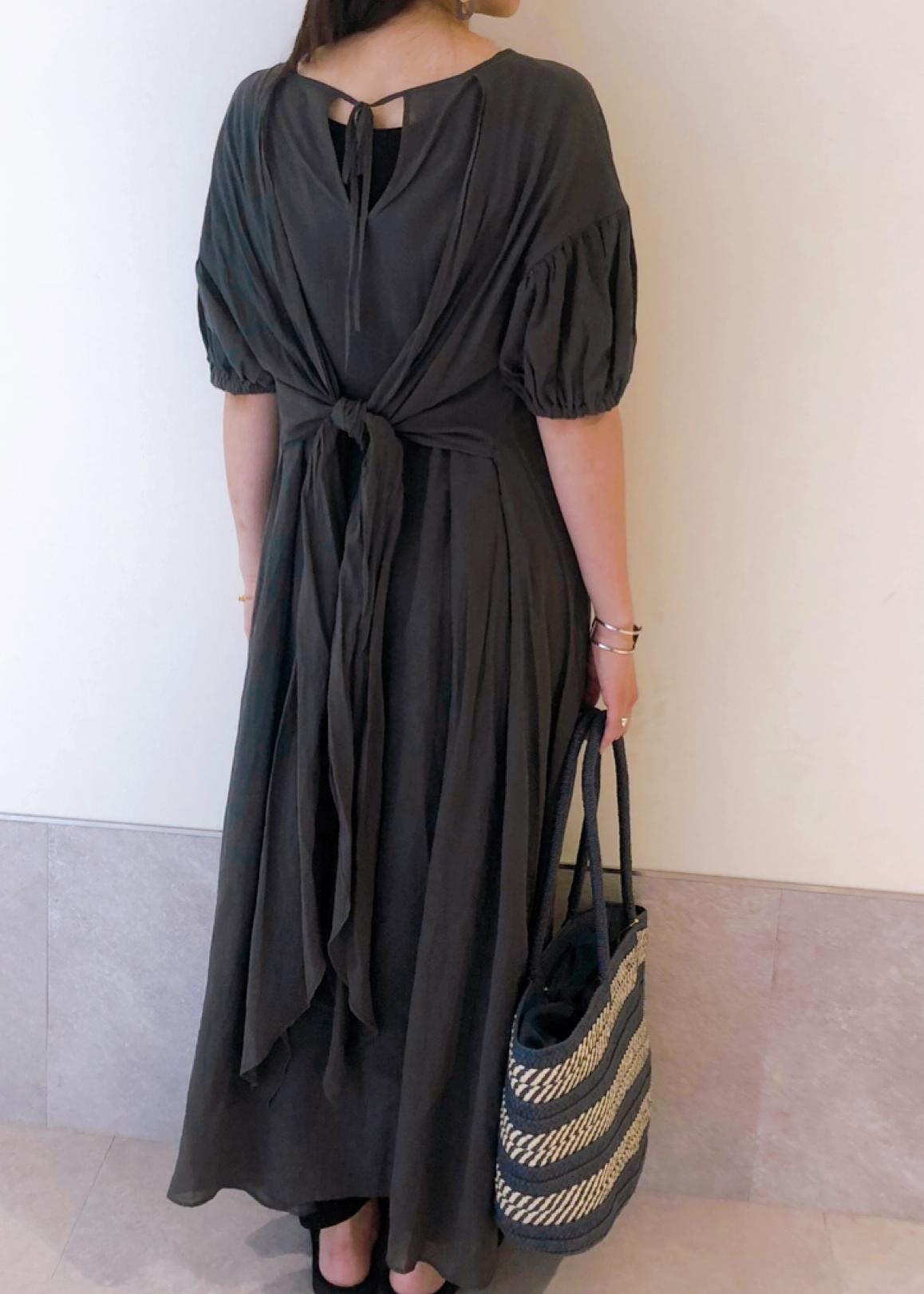 ハイウエストのリボンは前後どちらに巻き付けてもOKなデザインで気分によって変えられます♪ リボンの位置が変わるだけで雰囲気もガラリと変わるマルチなワンピースです。 素材も軽くて夏でも涼しく着用頂けます☆