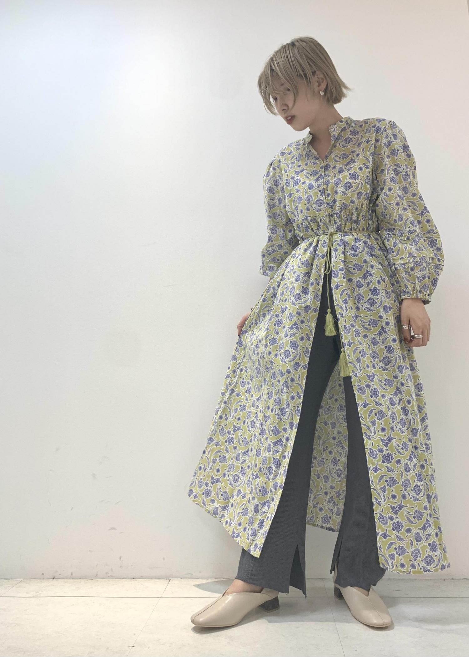 柄物のワンピースをニットパンツと合わせて着用してみました!夏〜秋まで使え、羽織にもなるワンピースなので色々な着方を楽しめます!また、柄自体もおしゃれで明るく、派手すぎないので取り入れやすいです♪