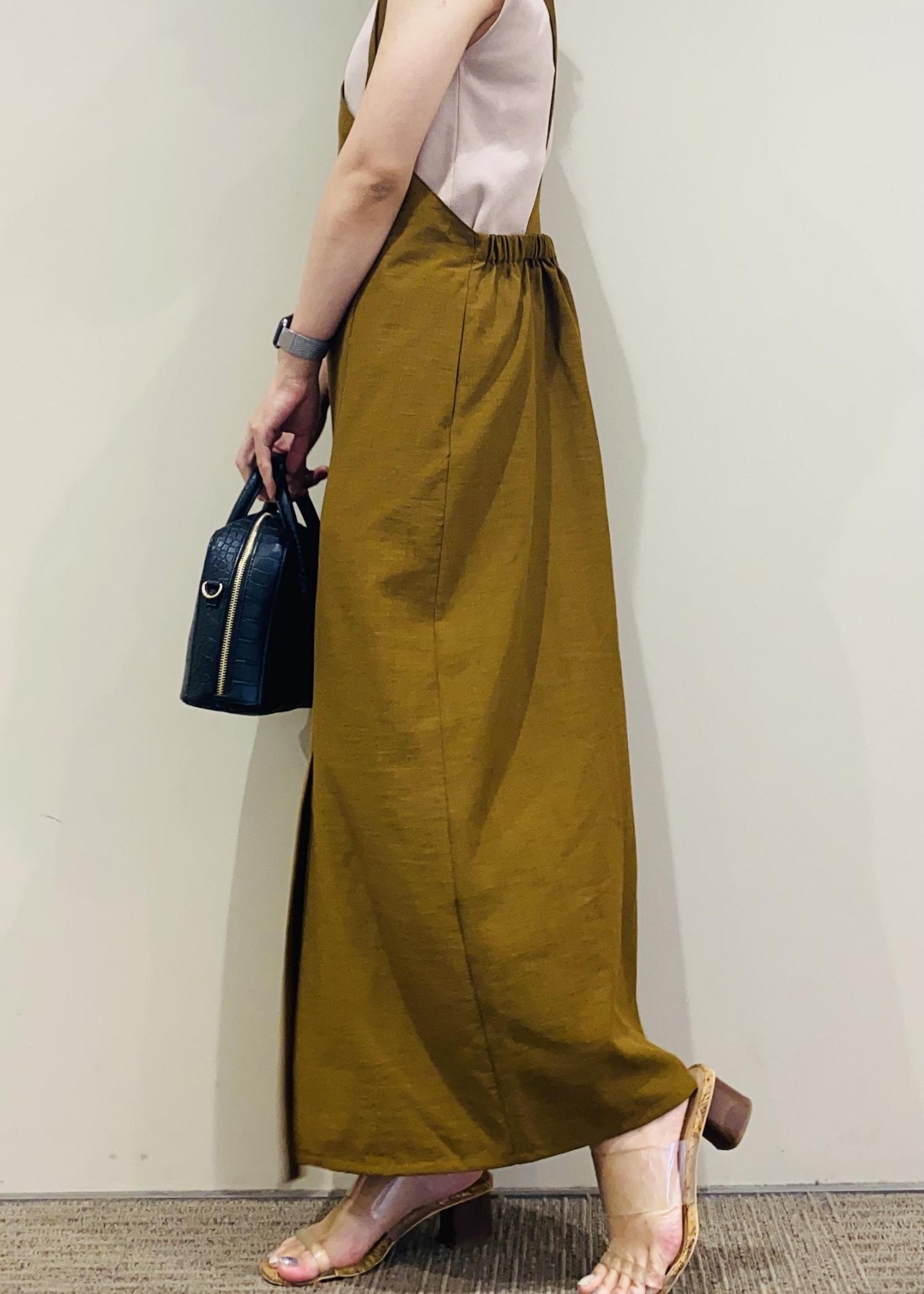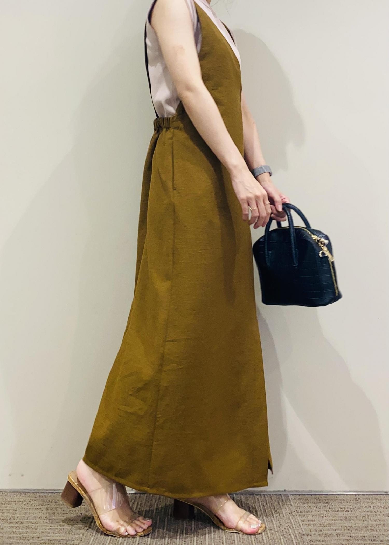 ブラウンのワンカラーでまとめてみました♪ 中のトップスを変えれば秋でも着れるワンピースです!