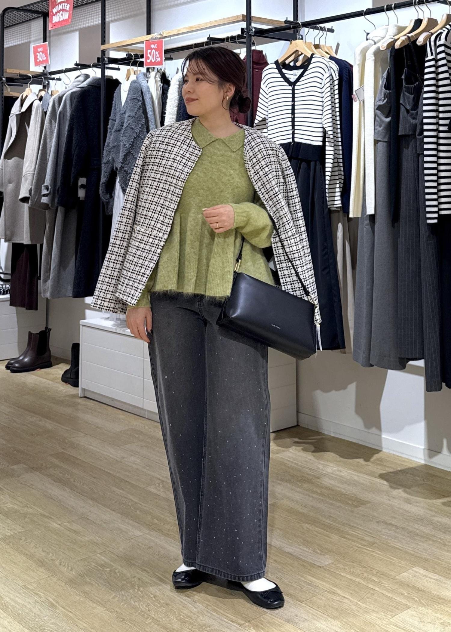 ブラウスのカラーがきれいだったので他に合わせるものはシンプルなカラーしにして、ブラウスが目立つように合わせてみました。