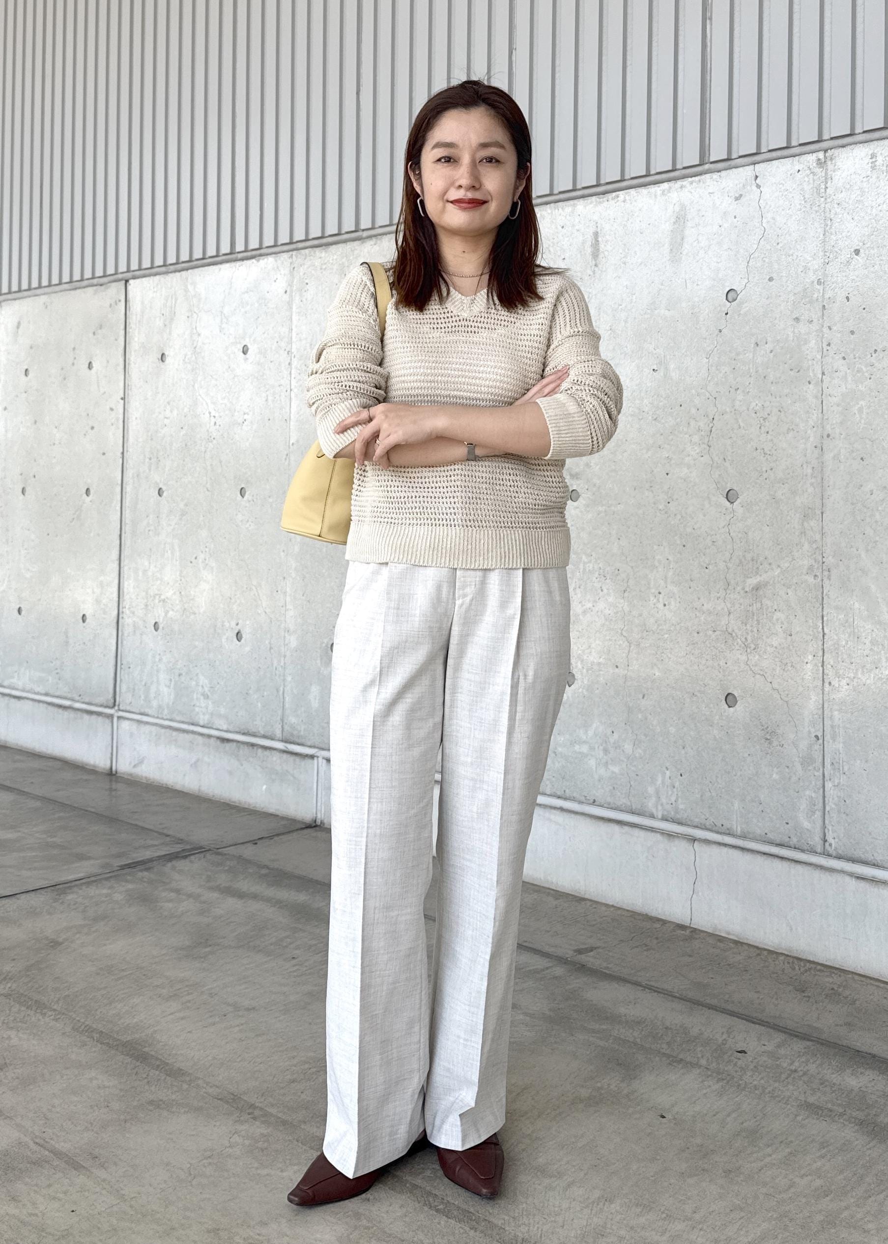 カラミ織りワンタックワイドパンツ/セットアップ対応・イージーケア