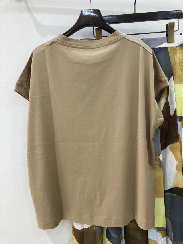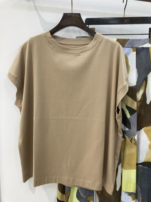 柔らかいアースカラーのスカートはトップスによってキレイめにもカジュアルにも着こなせます。