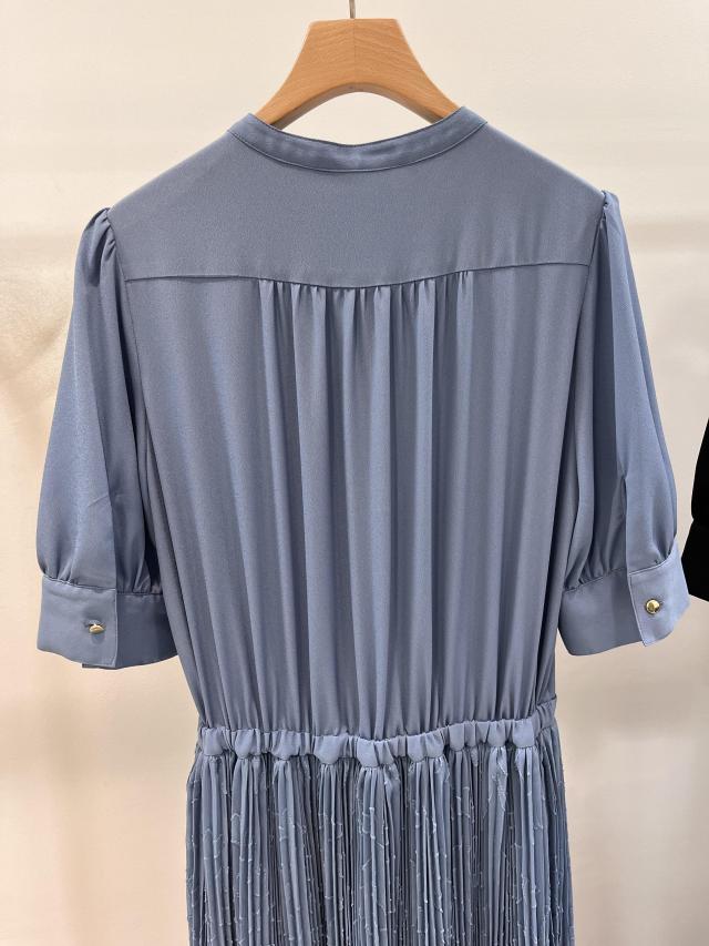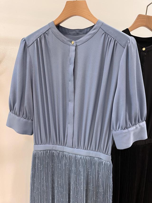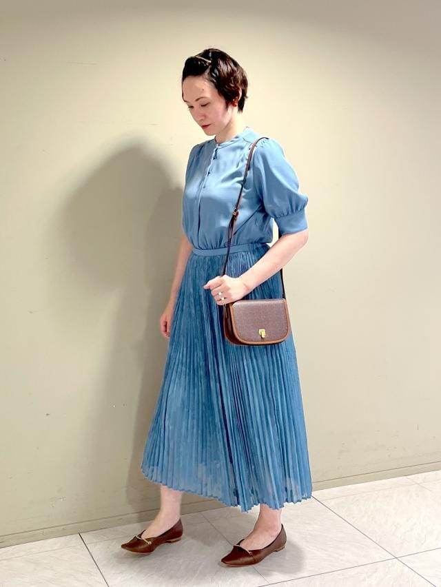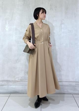 衿元の金ボタンがアクセントになる、品良いワンピース。