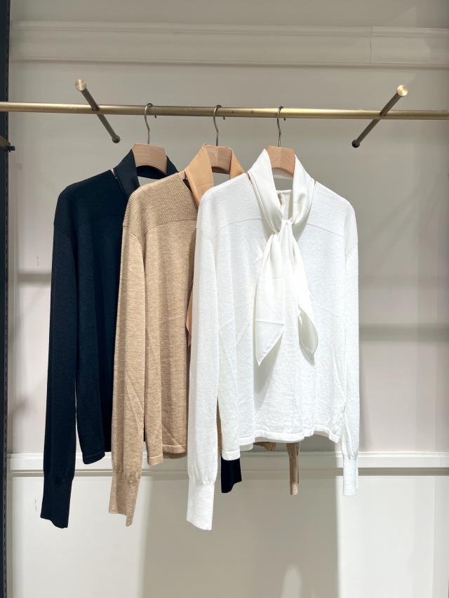柔らかくなめらかなので肌触りが良い薄手のニットです。
