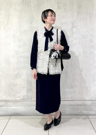 黒いラメ糸が織り込まれた華やかなニット。アルパカ混に比べると軽めの素材です。