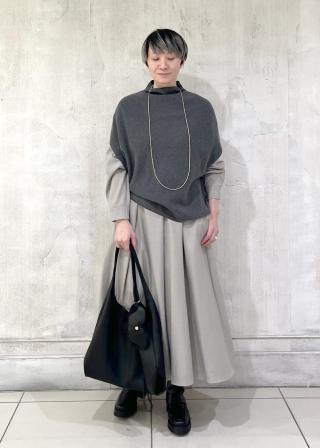 アルパカ混のもこもこ糸が可愛いニット。秋冬の気分を味わえる暖か素材です。