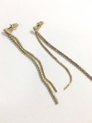 ビジューレーンとチェーンをシンプル組み合わせたミニマルなピアスです。クラシカルなベルキャッチを使用。
