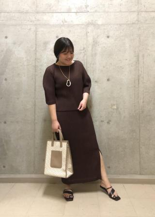 今回のようにセットアップでシンプルなスタイリングのポイントとしてお使いいただいたり、スリーブレスアイテムなどでトップにボリュームが欲しいときなどにもおすすめです。