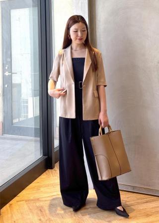 身頃部分はぴったりと、パンツ部分はタック入りでワイドシルエットで夏も快適に着やすいです。