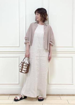 カジュアルでもきれいまでもあわせやすいです。特に無地のワンピースに、このバッグを待つと映えます。筒状のバッグは初めて使いますが、小さく見えて最低限のものは入りますし、上から中身が見やすく取り出しやすいです。