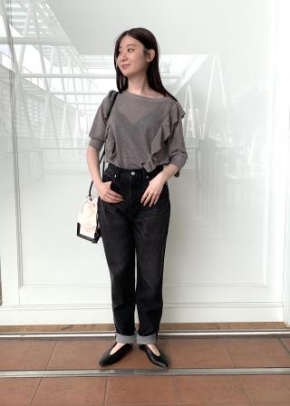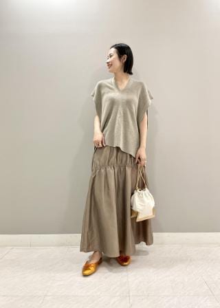 生成り×ブラック、生成り×ベージュ、でオールシーズン使えるベーシックカラーの配色。