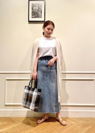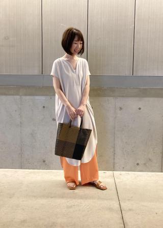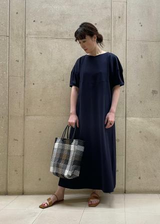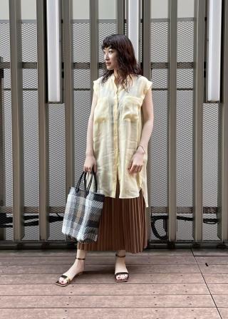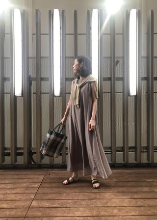 無地のワンピースなので、チェック柄をポイントにカラートーンも合わせてみました。