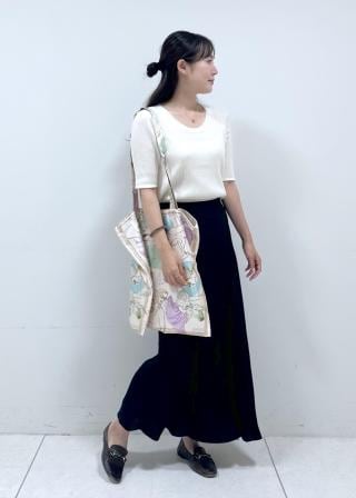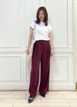 シルクの素材で上品さもあり、シンプルコーデにアクセントになるのでおすすめです。