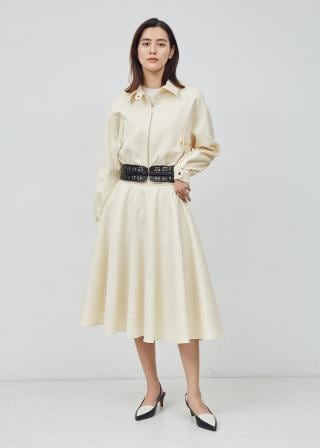 ワンピースやブルゾンなど多少の厚みの上からウエストマークでき、シンプルなコーディネートのポイントになります。