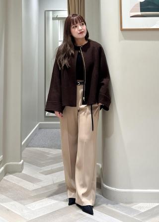 コバはエッジの効いた切り目ですっきりとしたモードな仕上がりに。細幅ですが、しっかりとハリのある素材で、スタイリングを引き締めてくれます。