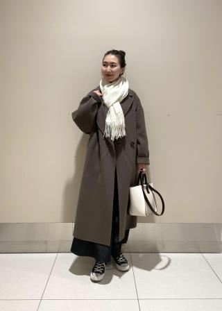 タスマニアウールニットやラクーンニットなど幅広く相性が良いコート。