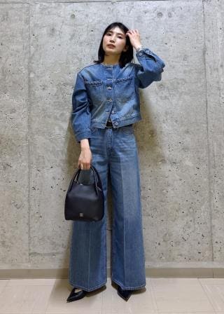 同素材のデニムパンツと合わせた、洗練されたセットアップスタイルが一押し。