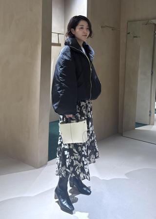 ショート丈なので電車や車での長時間移動も快適で、座った際に裾がもたつかないのも嬉しいポイント。着丈にほどよい前後差をつけることで、ヒップまわりをすっきり見せてくれます。休日はもちろん、お仕事や通勤用のアウターとしても真冬に重宝する一着です。
