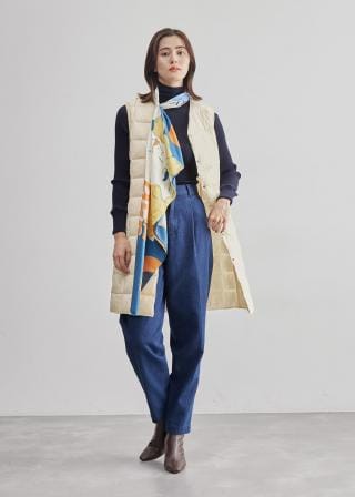 TAIONの定番キルティングインナーダウンは、ジャケットやコートの下に着るのはもちろん、Tシャツ・シャツ・パーカーなどの上にも気軽に羽織れる、軽くて暖かく着回しやすいデザインが特徴です。