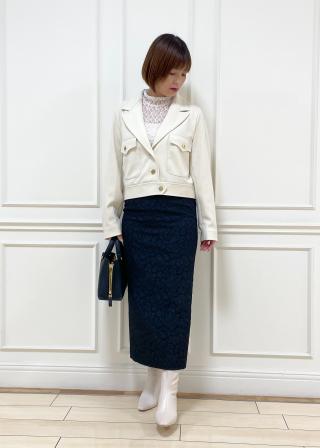 ミリタリーテイストアイテムなのでプリーツスカートにブーツあわせや、パンツスタイルでワントーンでコートと合わせたりするレディーライクな合わせがおススメです。