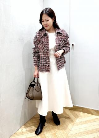 甘めな印象のあるツィードのイメージとは反面、ボクシーなラインが大人カジュアルなスタイリングにはもってこいのデザインです。