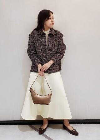 軽さとハリのあるシルエットが特徴、インナー次第で初秋から長く楽しめるアイテムです。ロペ別注色としてブラウン系カラーを特注しました。