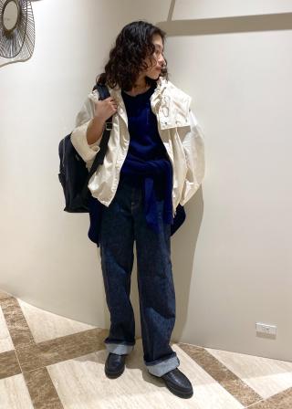 オフホワイトはブラックよりマウンテンパーカー感が出ないので綺麗めに着れて素敵です。