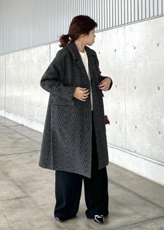 高級感のあるヘリンボーンツイードコート。