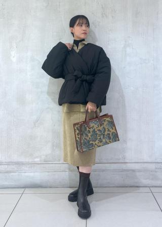 上質素材を贅沢に使用したパフィーコートで、丸みのあるボリュームシルエットが女性らしさを引き立てます。ウエストベルトでメリハリを加え、軽やかな着心地ながら保温性に優れた一着です。ノーカラーのショート丈で素材の表情を生かし、モダンで存在感のあるデザインは、ワイドパンツやセットアップとのコーディネートにも最適です。
