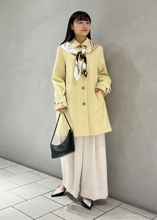 キレイ目素材でジャケットの上からも羽織れるサイズ感なのでオンオフどちらのシーンでも活躍するコートです。同シリーズのポケット付きタイトスカートとのコートアップスタイルも今シーズンはお勧めです。