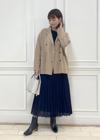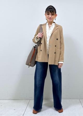 ニットならではのリラックスした着心地が魅力のダブルジャケット。ボクシーなシルエットとヒップ丈で、体に自然に馴染む軽やかな仕上がりです。裏地がないため、カーディガン感覚で羽織れるニットジャケットです。