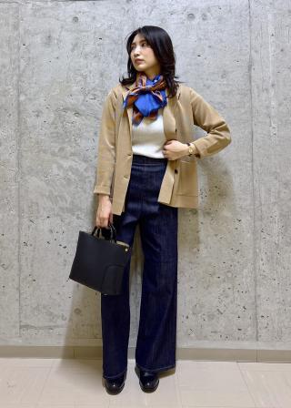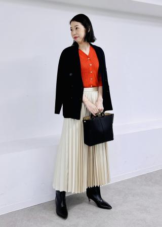 暑さの残る時期はカットソーをインナーに、デニムパンツやフレアスカートと合わせたオン・オフ兼用スタイルがおすすめです。学校行事などきちんと感が求められるシーンにも活躍します。夏から秋に向けて、お仕事や通勤シーンなどオフィスカジュアルにもおすすめです。